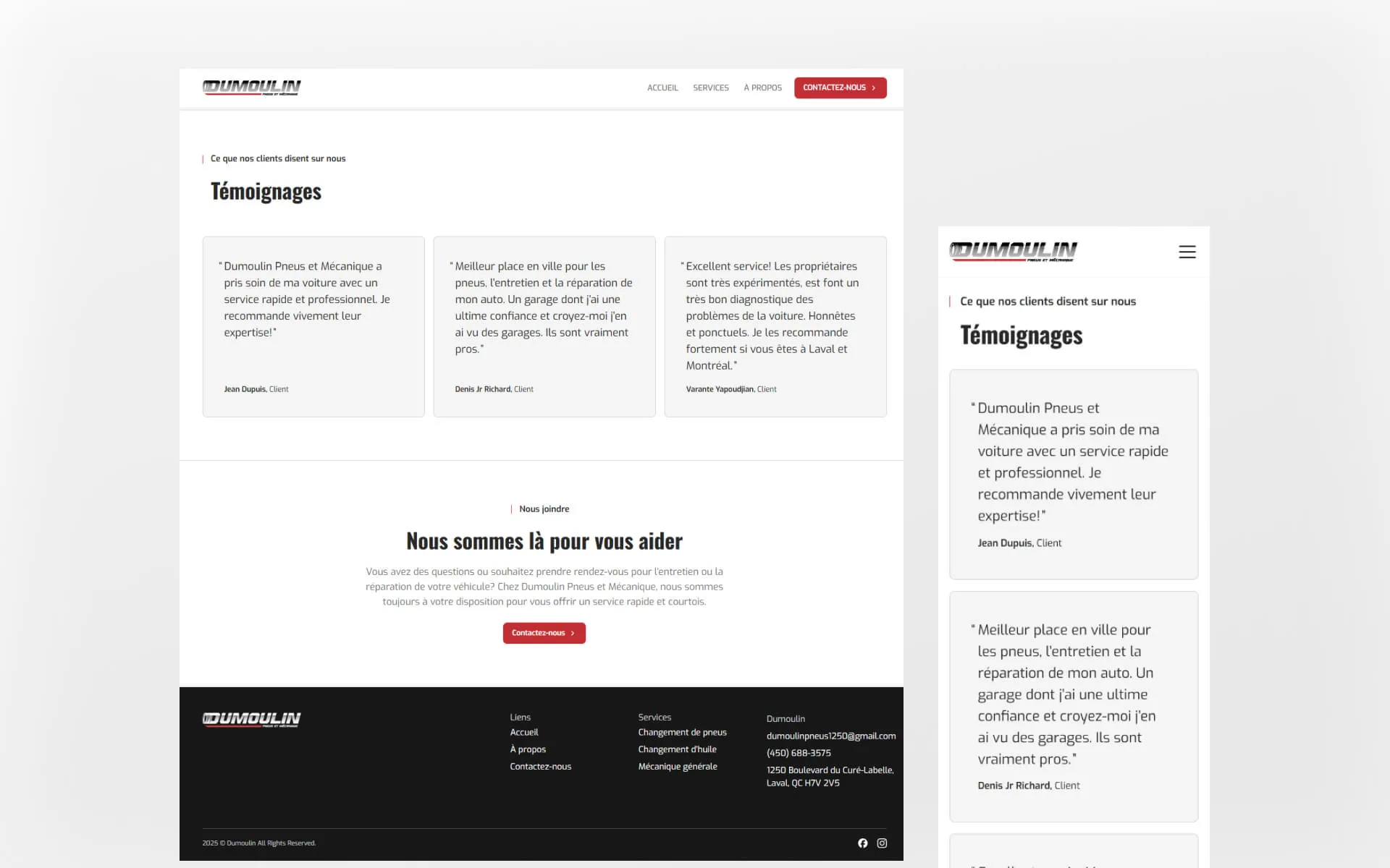 Dumoulin Pneus et Mécanique has been a trusted name in automotive repair and maintenance in Laval for years. Known for their expert team, honest approach, and customer-first service, they needed a website that reflected these values and helped build even greater trust with their community.