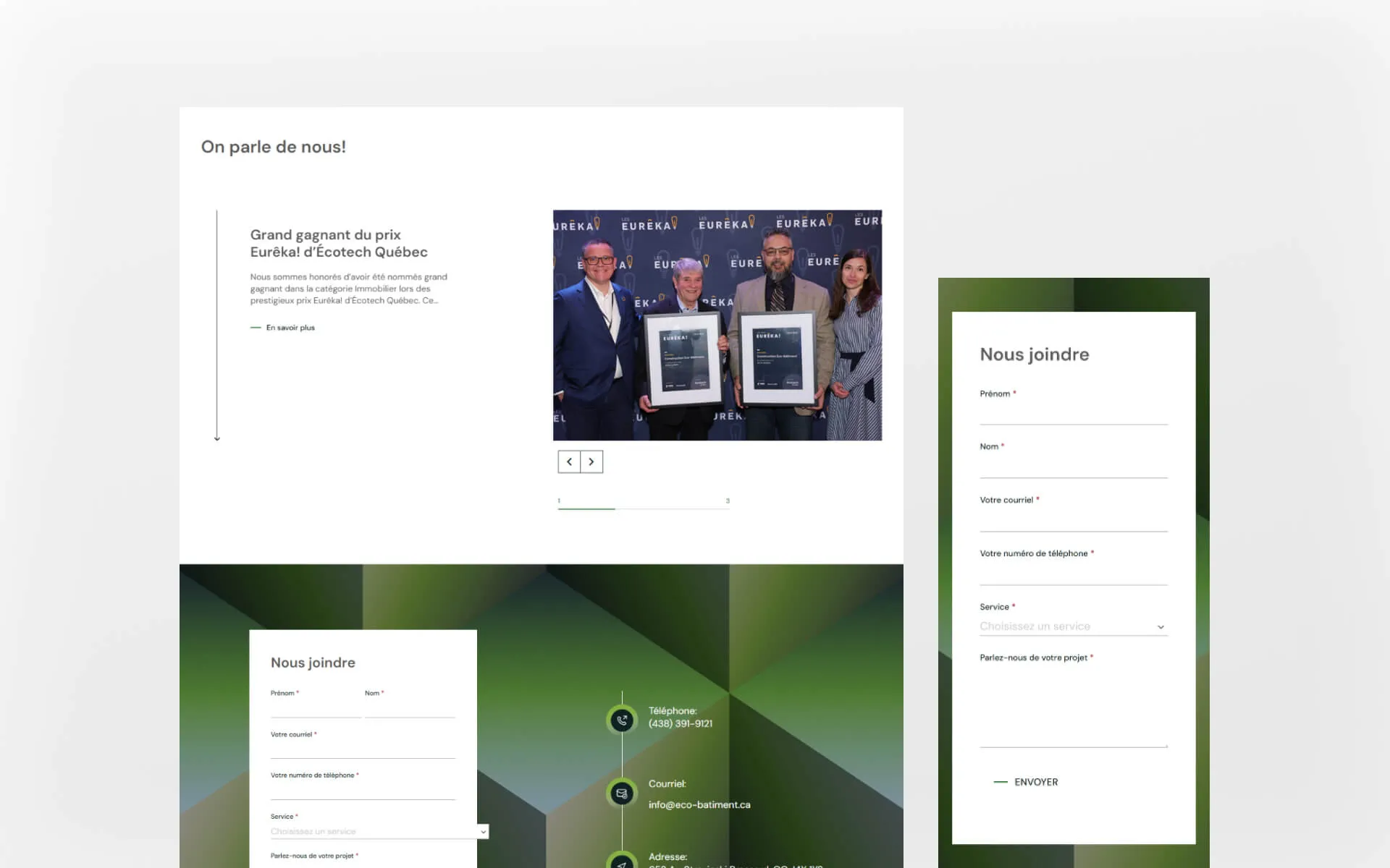 Éco-Bâtiment is a certified Novoclimat general contractor driven by a passion for sustainable construction and innovation. Known for their commitment to quality, honesty, and forward-thinking solutions, they needed a digital platform that reflects their expertise and builds trust with prospective clients.