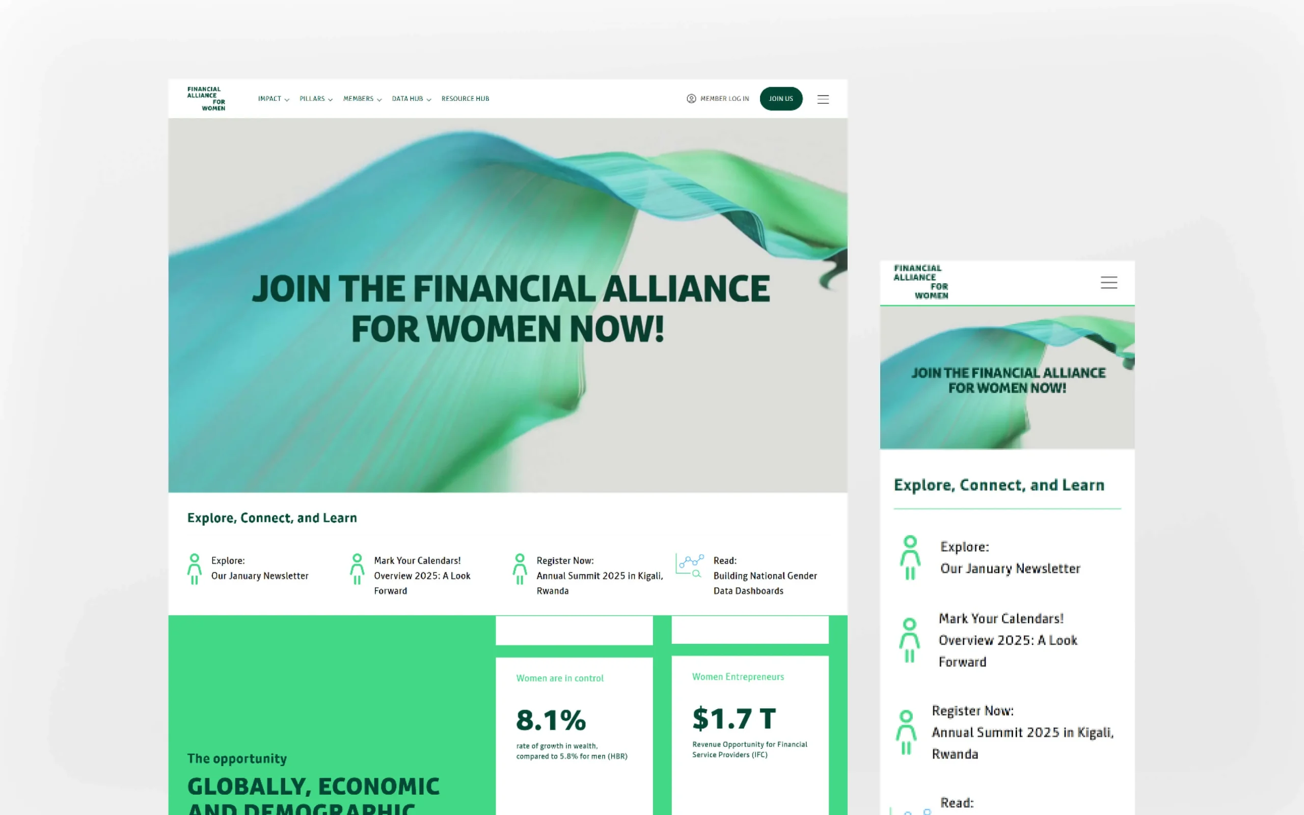 The Financial Alliance for Women is the leading network of financial organizations committed to unlocking the full potential of the female economy — the world’s fastest-growing and most underserved market. With members spanning over 160 countries, their mission is to drive inclusive financial growth through shared knowledge, advocacy, and innovation.