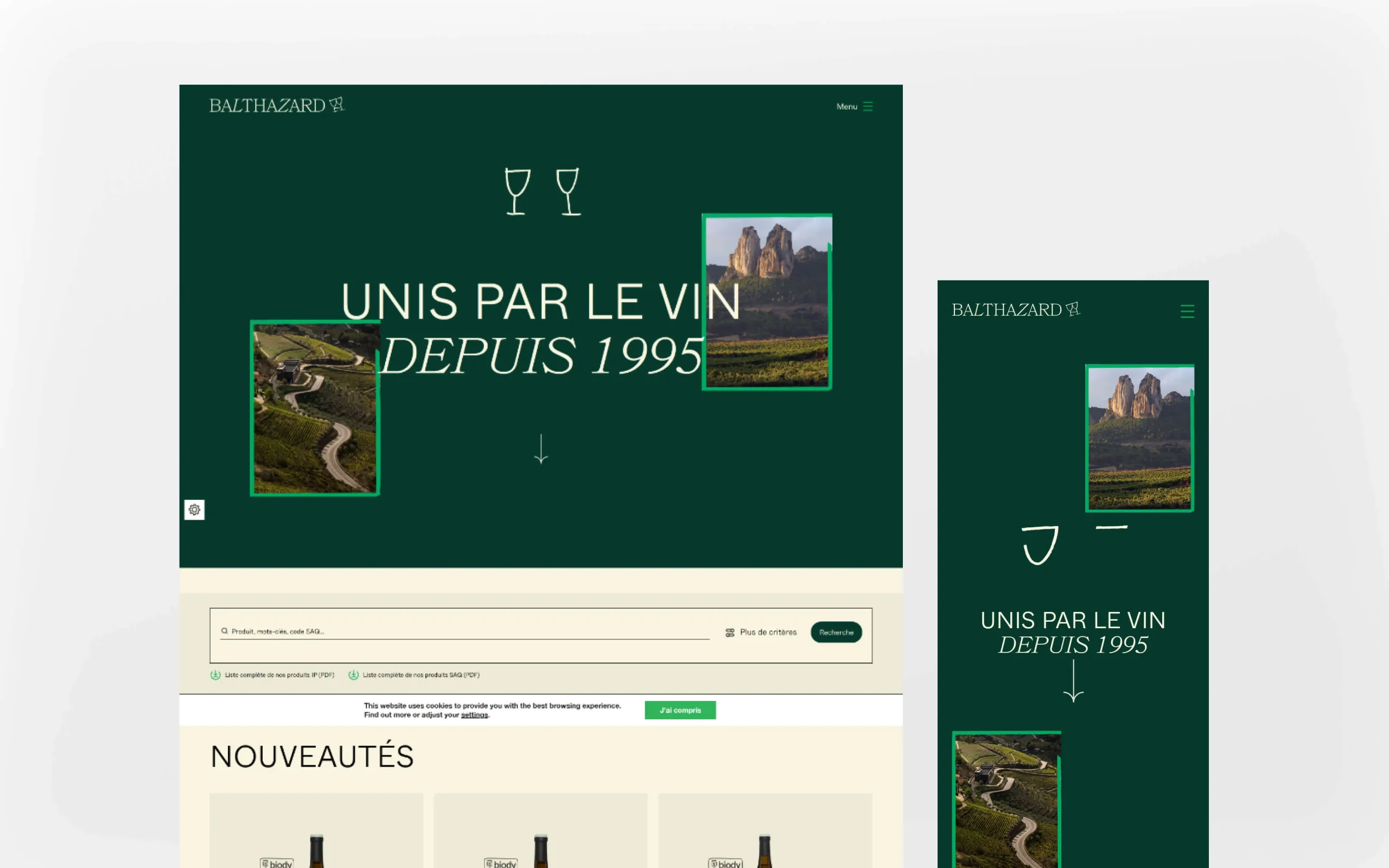 A modular layout that allows the Balthazard team to update, expand, and evolve their content — just like their wine philosophy.